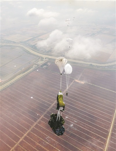 5月中旬,第72集團(tuán)軍某旅開展多傘型攜裝傘降訓(xùn)練。