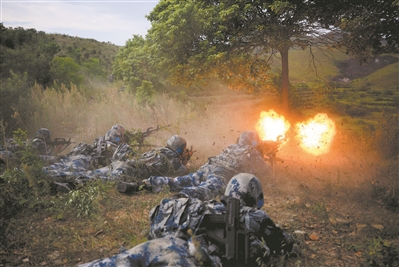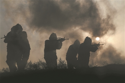 圖⑤:硝煙彌漫,官兵向目標地域滲透偵察。