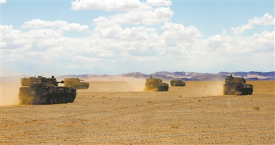 清晨,一陣急促的警報(bào)聲響起,官兵們迅速奔向戰(zhàn)車。隨即,數(shù)十輛火炮戰(zhàn)車卷起滾滾沙塵向發(fā)射陣地快速機(jī)動。