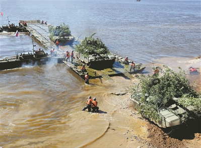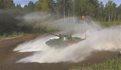 8月25日,“空降排”項(xiàng)目第二階段戰(zhàn)車單車賽展開激烈角逐,首次使用俄方戰(zhàn)車的我軍參賽隊(duì)快速通過淺灘障礙。