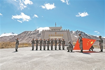 近日,新疆喀什軍分區(qū)紅其拉甫邊防連組織即將退役的士兵進(jìn)行告別國(guó)門儀式。圖為守邊戰(zhàn)士面向國(guó)旗莊嚴(yán)宣誓,他們紛紛表示,到地方后會(huì)續(xù)寫軍人新風(fēng)采。李小龍攝