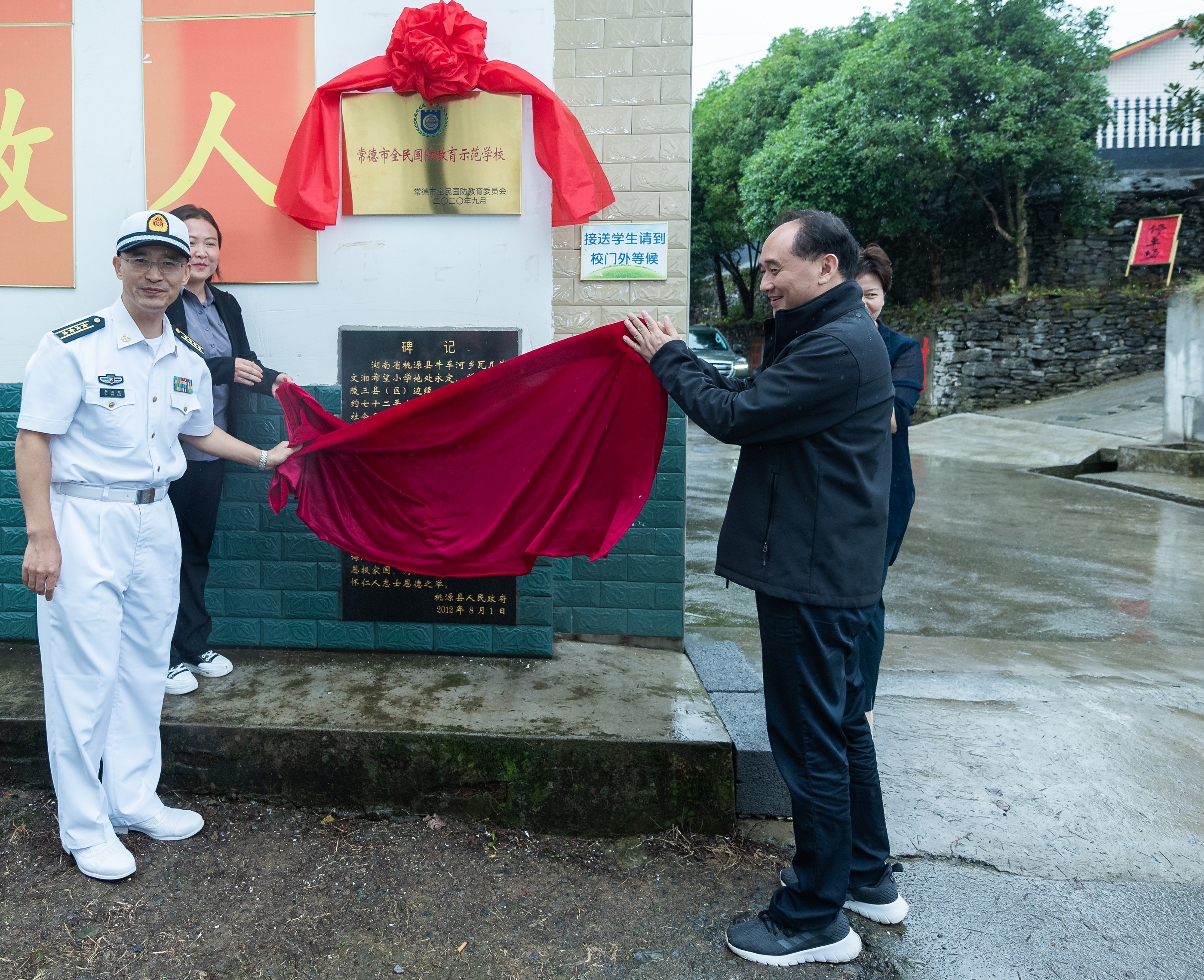 圖為軍地領(lǐng)導(dǎo)共同為國(guó)防教育示范學(xué)校揭牌。彭三珊 攝