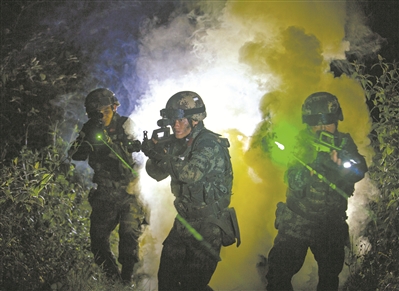 圖②:開展夜間反恐演練。