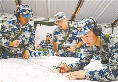 操作方艙內,各號手屏氣凝神,一串串口令清晰有力?!鞍l(fā)現(xiàn)目標,方位××,距離××!”就在準備上報射擊決心時,“敵”機突然釋放強電磁干擾,對地面雷達進行壓制,屏幕上的目標瞬間消失。面對“敵”機使出的招數(shù),指揮員陳代果斷下令實施反干擾。操縱員快速反應,目標重現(xiàn)在顯示屏上。