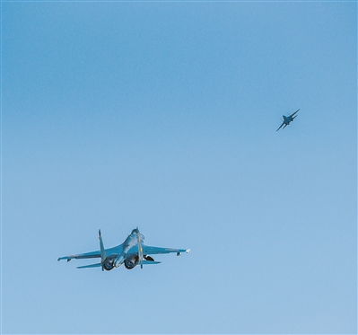 晴空萬里,空軍航空兵某團(tuán)多架戰(zhàn)鷹呼嘯而起,進(jìn)行自由空戰(zhàn)對抗演練。