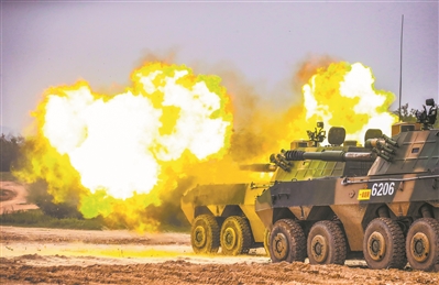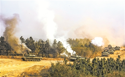 紅方偵察分隊(duì)抵近藍(lán)方前沿陣地,迅速傳回“敵情”。指揮所果斷下令,指揮炮兵分隊(duì)、電子對(duì)抗分隊(duì)、陸航火力和步兵突擊車攻擊群打出一套“組合拳”,對(duì)藍(lán)方陣地實(shí)施猛烈攻擊?;鹆Υ驌暨^(guò)后,藍(lán)方殘余力量依托有利地形負(fù)隅頑抗。抓住時(shí)機(jī),紅方前沿突擊隊(duì)順勢(shì)展開(kāi)強(qiáng)攻,在藍(lán)方火力封鎖區(qū)“撕”開(kāi)一個(gè)突破口,成功占領(lǐng)陣地。