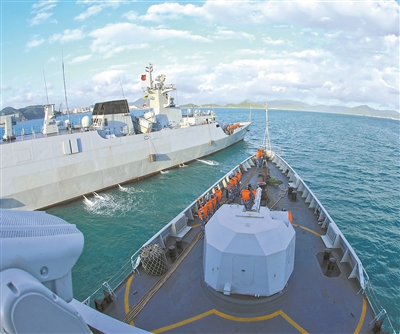 初冬時(shí)節(jié),南海某海域波濤奔涌,戰(zhàn)艦馳騁,南部戰(zhàn)區(qū)海軍某護(hù)衛(wèi)艦支隊(duì)艦艇全訓(xùn)合格考核正在進(jìn)行。