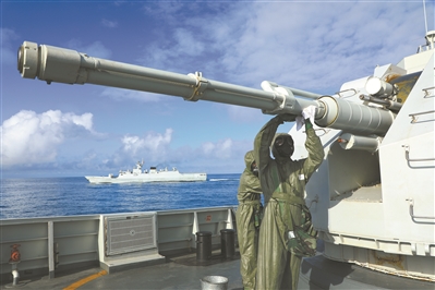 圖①:副炮消滅海上浮雷。