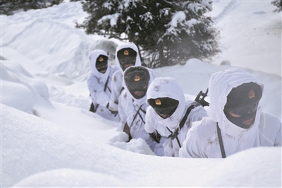 臨近春節(jié),新疆博爾塔拉軍分區(qū)某邊防團組織官兵在零下20多攝氏度的嚴(yán)寒天氣下巡邏執(zhí)勤,錘煉官兵邊防管控能力,確保邊境安全穩(wěn)定。圖為巡邏途中官兵手拉手在深雪中奮力前行。