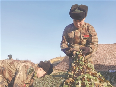 就讀于阜新高等專科學(xué)校的應(yīng)征青年趙龍,在冬訓(xùn)勤務(wù)保障班班長李梁的帶領(lǐng)下,熟練地安裝支架、鋪設(shè)棚頂、穿掛圍墻……不久,一頂班用帳篷搭設(shè)完畢。聊起參訓(xùn)感受,趙龍興奮地告訴筆者,短短3天時間,他已經(jīng)參與了搭設(shè)帳篷、構(gòu)工偽裝、警戒執(zhí)勤等課目,“增長見識、學(xué)習(xí)本領(lǐng),這次參加集訓(xùn)收獲頗豐,不僅堅定了我參軍入伍的決心,也讓我對今后的軍營生活充滿信心?!?/p>