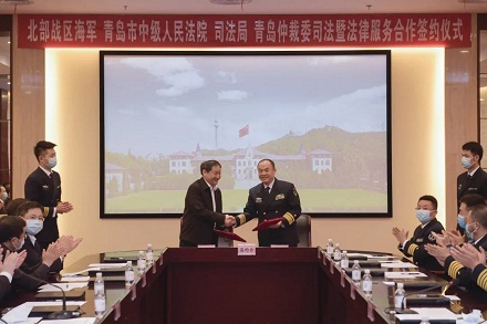 本報訊 通訊員傅劍飛 杜亞峰 王冠彪 近日,北部戰(zhàn)區(qū)海軍與山東省青島市中級人民法院、青島市司法局、青島仲裁委舉行軍地司法暨法律服務(wù)合作簽約儀式,正式確立軍地司法合作關(guān)系。