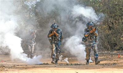 2月中旬,海軍陸戰(zhàn)隊某旅組織開展班戰(zhàn)術(shù)演練。翻山嶺、越溝壑、穿叢林……參訓(xùn)班組在野外陌生條件下連貫完成協(xié)同搜索、情報偵察和滲透破襲等行動。