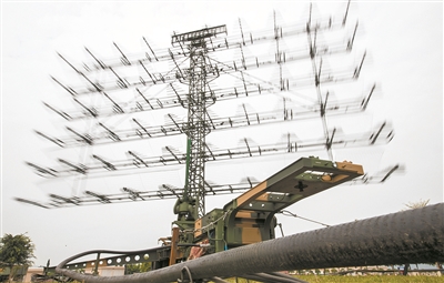 操作方艙內(nèi),各號手屏氣凝神?!胺轿弧痢?,距離××,發(fā)現(xiàn)目標(biāo)!”參謀人員迅速報(bào)告“敵情”。話音未落,“敵”機(jī)對地面雷達(dá)釋放強(qiáng)電磁干擾,并伺機(jī)向陣地逼近。