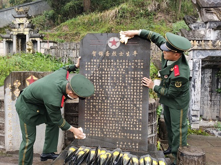 清明將至,當(dāng)武警湖南總隊邵陽支隊城步中隊官兵再次來到這里,欣喜地看到,烈士紀(jì)念碑廣場前坪干凈整潔,紀(jì)念碑碑文已重新描漆。