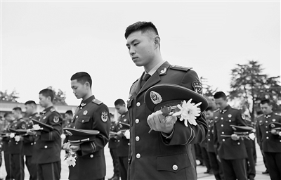 近日,武警安徽總隊合肥支隊機(jī)動一中隊組織官兵來到蜀山烈士陵園,開展祭奠活動,傳承紅色基因。本報特約記者 徐偉 攝