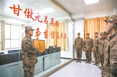 新兵們參觀機房,了解紅山河機務站光輝歷史。