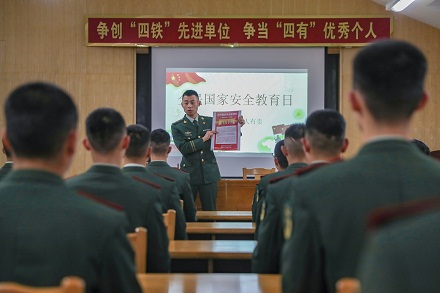 圖為部隊(duì)開展“全民國(guó)家安全教育日”專題授課。胡港 攝