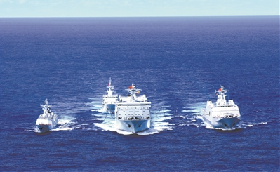 接到指令,準備接受補給的3艘艦船加速前出占領補給陣位,與補給艦查干湖艦組成“兩橫一縱”補給隊形。與此同時,艦載直升機迅速升空,協(xié)同衡陽艦擔負編隊警戒任務。