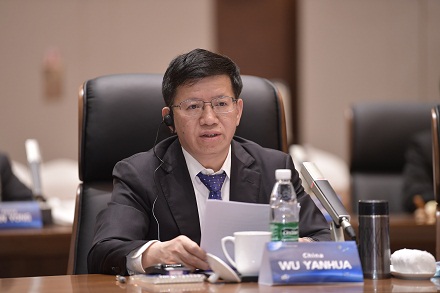 圖為國(guó)家航天局副局長(zhǎng)吳艷華發(fā)表致辭。張高翔 攝