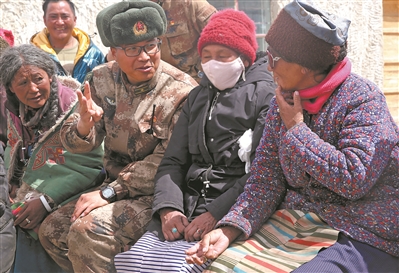 4月的喀喇昆侖腹地,寒意散去,春的氣息悄然來(lái)臨。這天,正在雪域高原駐訓(xùn)的新疆軍區(qū)某紅軍團(tuán)官兵來(lái)到日土村,開(kāi)展“愛(ài)民助民進(jìn)藏家”活動(dòng),為藏族同胞宣講黨史、巡醫(yī)送藥、幫困解難。
