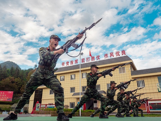 圖為武警井岡山中隊(duì)官兵進(jìn)行刺殺訓(xùn)練。 吳偉 攝