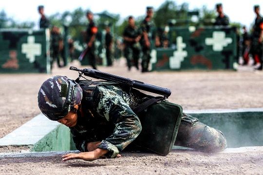 在現(xiàn)場組織訓(xùn)練的中隊長吳野說,雖然這些訓(xùn)練課目軍事訓(xùn)練大綱并沒有明確要求,但卻是反恐實戰(zhàn)中的必殺絕技。