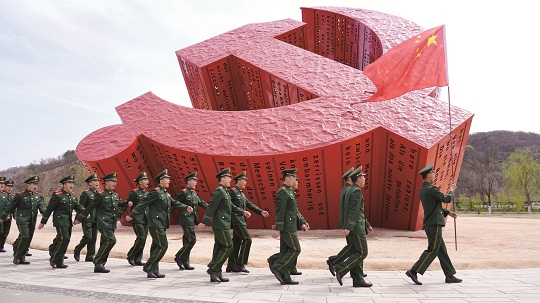 圖為武警陜西總隊(duì)延安支隊(duì)執(zhí)勤一中隊(duì)官兵開(kāi)展主題黨日活動(dòng)。黨鵬鑫 攝
