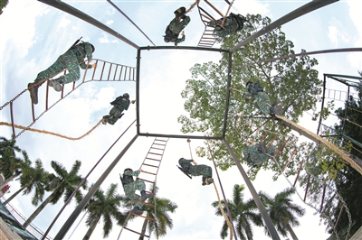 7月10日,武警廣西總隊(duì)機(jī)動(dòng)支隊(duì)組織官兵開展攀登、擒敵等課目訓(xùn)練,提升綜合實(shí)戰(zhàn)能力。余海洋 攝