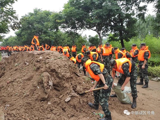 河南省軍區(qū)出動(dòng)2000余民兵,在鄭州、開(kāi)封、洛陽(yáng)、許昌、焦作等地10余個(gè)險(xiǎn)情地段執(zhí)行疏通河道、疏散群眾和巡查、加固河堤等任務(wù)。