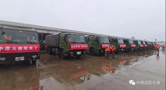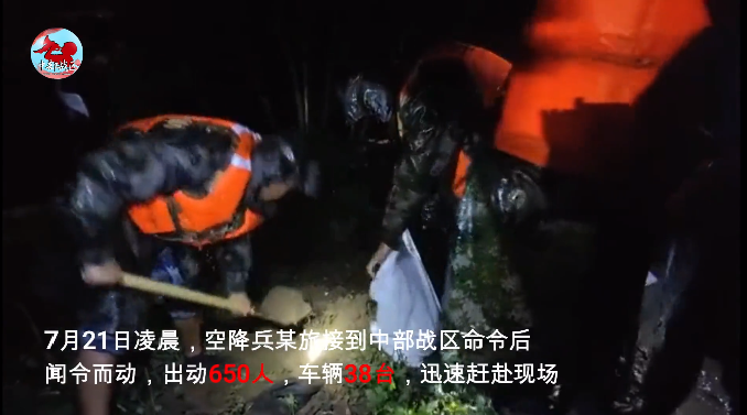 21日上午,根據(jù)中部戰(zhàn)區(qū)命令,駐豫火箭軍某部派出200名官兵,攜帶12艘皮劃艇、1000多件救生衣、500多個(gè)鍬和鎬等必要救生器材,奔赴鄭州市。