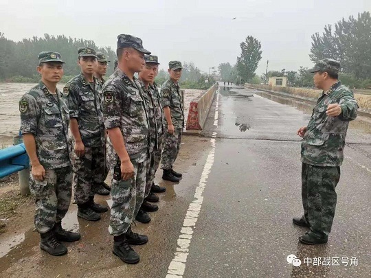 中部戰(zhàn)區(qū)中將副司令員王長(zhǎng)江帶抗洪搶險(xiǎn)前進(jìn)指揮所人員,到常莊水庫(kù)、郭家咀水庫(kù)勘察災(zāi)情,慰問(wèn)一線官兵,與河南省政府協(xié)調(diào)對(duì)接抗洪搶險(xiǎn)需求。(記者:黎璇、尚潮、常延凱)