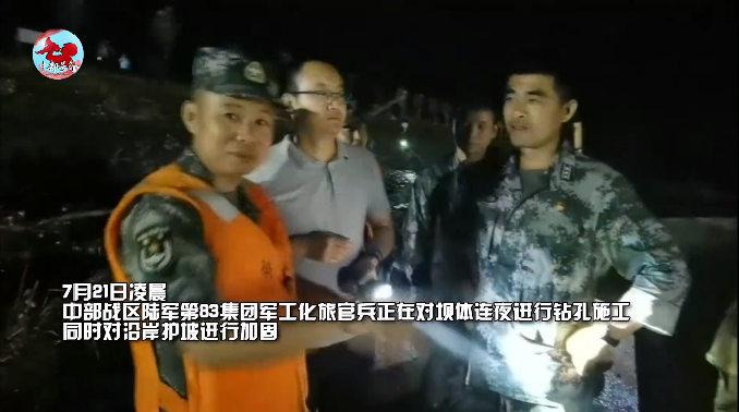 20日凌晨,河南省洛陽(yáng)市伊川縣平等鄉(xiāng)馬回營(yíng)村伊河攔水壩出現(xiàn)險(xiǎn)情。按照中部戰(zhàn)區(qū)命令,第83集團(tuán)軍某工程防化旅立即啟動(dòng)預(yù)案,炸藥、雷管、救生舟艇等爆破和防洪器材緊急裝車,75名官兵、15臺(tái)裝備車輛在最短時(shí)間內(nèi)集結(jié)完畢,火速馳援洛陽(yáng)市伊川縣任務(wù)區(qū),執(zhí)行爆破分洪任務(wù)。