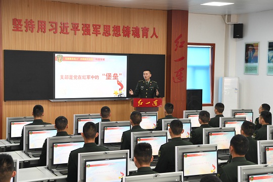圖為“紅一連”指導(dǎo)員鄭紀(jì)文向官兵講述“支部建在連上”歷史根源。張永進(jìn) 攝