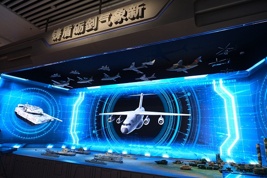 圖為景觀《鑄盾礪劍氣象新》,展示了人民軍隊(duì)新型武器裝備。韓瀟 攝