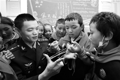西藏軍區(qū)邊防某團(tuán)官兵與駐地小學(xué)學(xué)生開展聯(lián)誼活動(dòng)。張志輝攝