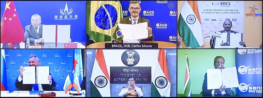 本報訊 見習(xí)記者韓瀟 通訊員張未 記者從國家航天局獲悉,2021年8月18日,國家航天局局長張克儉與巴西航天局局長卡洛斯·莫拉、俄羅斯國家航天集團總經(jīng)理羅戈津、印度空間研究組織主席西萬和南非國家航天局局長穆薩米等金磚國家航天機構(gòu)負責人進行了視頻會議,并簽署了《關(guān)于金磚國家遙感衛(wèi)星星座合作的協(xié)定》。