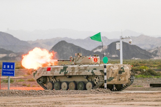 圖為中國參賽隊陸軍代表隊對步戰(zhàn)車目標(biāo)進(jìn)行實彈射擊。王俊 攝