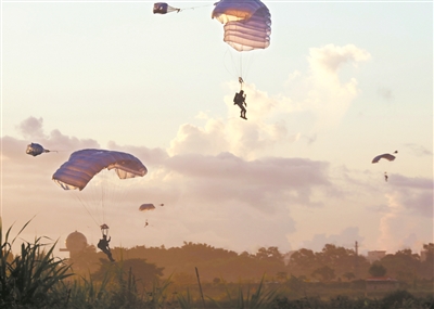先遣隊員準(zhǔn)確傘降至預(yù)定地域。