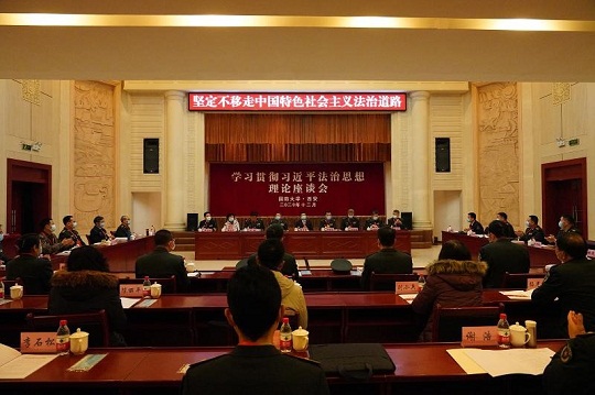 圖為國(guó)防大學(xué)政治學(xué)院西安校區(qū)召開(kāi)學(xué)習(xí)貫徹習(xí)近平法治思想理論座談會(huì)。冉慶 攝