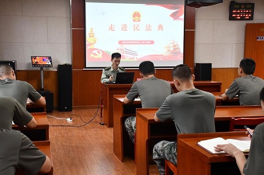警通勤務(wù)連正在進(jìn)行一場(chǎng)普法宣講,一堂課下來(lái),戰(zhàn)士小李深有感觸地說(shuō):“家里的難題沒(méi)了,自己的心結(jié)也打開(kāi)了?!贝舜蔚男v“專家”,是西安校區(qū)2019級(jí)碩士研究生小齊。