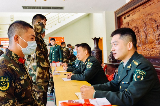 圖② 青海軍地法官向官兵代表贈(zèng)送法律書(shū)籍。羅元?jiǎng)P 攝