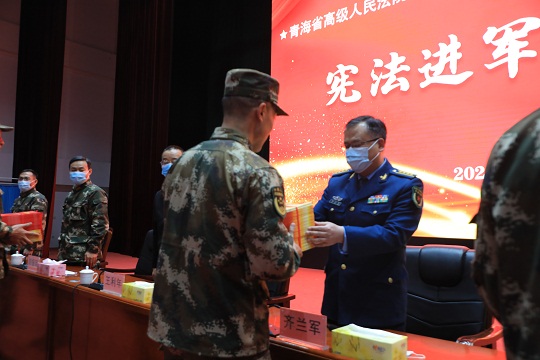 12月2日,武警青??傟?duì)機(jī)動(dòng)第一支隊(duì)邀請(qǐng)青海省高級(jí)人民法院和解放軍西寧軍事法院工作人員,來(lái)隊(duì)開(kāi)展“憲法進(jìn)軍營(yíng)”活動(dòng),為官兵及其家屬提供法律援助。