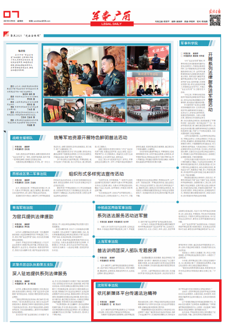 近日,解放軍沈陽(yáng)軍事法院聯(lián)合遼寧省高級(jí)人民法院,在駐遼部隊(duì)開展憲法宣傳周活動(dòng)。