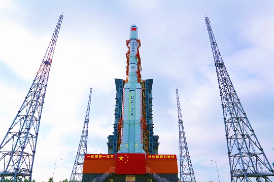 12月23日,中國文昌航天發(fā)射場,距離大海約800米的發(fā)射平臺上,高大挺拔的長征七號改遙三運載火箭劍指蒼穹。乳白色的箭體上,一面鮮紅的五星紅旗圖案格外醒目。