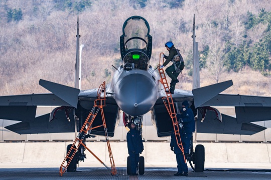 海軍航空大學某基地組織飛行訓(xùn)練,圖為飛行教官在機務(wù)人員的幫助下登上殲-15戰(zhàn)機。萬全 攝