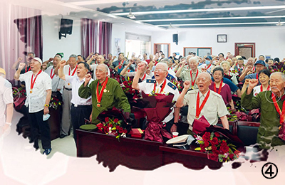 圖④:“光榮在黨50年”紀(jì)念章頒發(fā)儀式現(xiàn)場(chǎng),老黨員重溫入黨誓詞。
