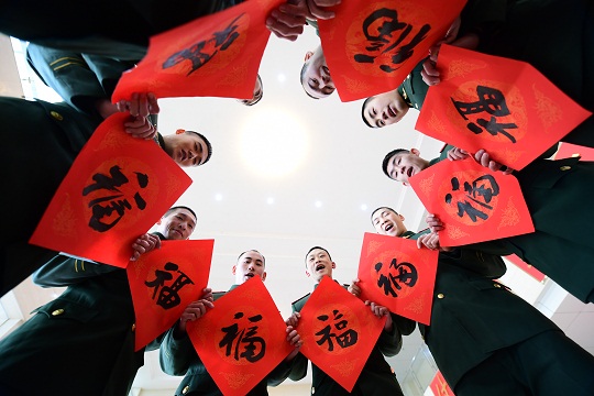 圖為官兵們手持福字向家人獻(xiàn)上祝福。曹先訓(xùn) 攝