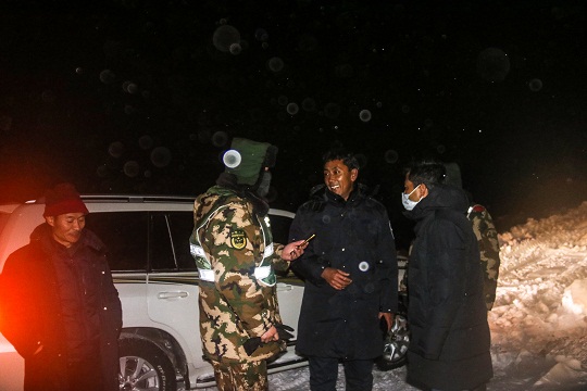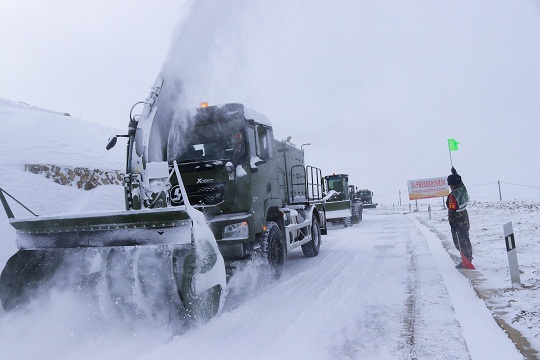 因?yàn)?zāi)害現(xiàn)場地處平均海拔4000多米以上海拔,持續(xù)降雪不斷,加之氣溫低至零下20多攝氏度,給整個(gè)道路搶通工作帶來了不少難度。為盡快清理路面積雪搶通道路,武警官兵采取“人歇機(jī)不停、分段搶通、先通后拓”的方法進(jìn)行全力搶通,克服了高寒缺氧及紫外線強(qiáng)烈等重重困難。