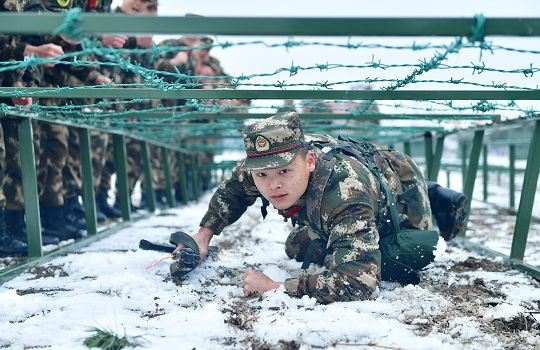 2月8日,武警湖北總隊執(zhí)勤支隊新戰(zhàn)士正在雪地練習(xí)戰(zhàn)術(shù)動作。該支隊注重在惡劣天候和復(fù)雜條件下摔打錘煉官兵意志,在爬冰臥雪中鍛造忠誠衛(wèi)士的錚錚鐵骨,在從難從嚴(yán)、聚焦實戰(zhàn)中全面提升部隊軍事訓(xùn)練質(zhì)量。