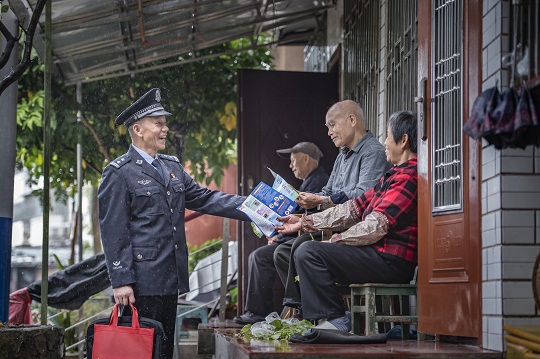 如今,年過半百的于伍生依然帶著工作時的“標(biāo)配”:一個手提袋、一本筆記本、一疊名片、一臺執(zhí)法儀、一支筆,走進一街一區(qū)、一家一戶。
